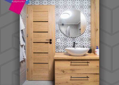 A fotókon látható, hogyan képes egy jól megválasztott beltéri ajtó egyszerre növelni a privát szféra érzését és emelni a tér esztétikai értékét. Ezekkel a megoldásokkal a fürdőszoba azonnal rendezettebb, letisztultabb és modernebb benyomást kelt.